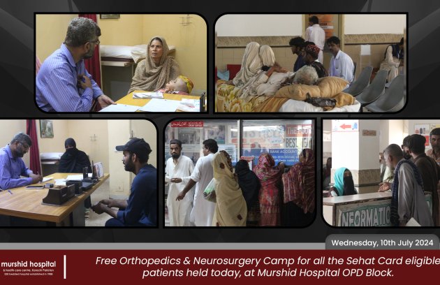 Free Orthopedics & Neurosurgery Camp for all the Sehat Card eligible patients held today, Wednesday 10th July 2024 at Murshid…