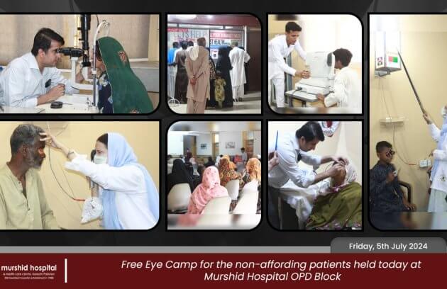 Free Eye Camp for the non-affording patients held on Friday, 5th July 2024 at Murshid Hospital OPD Block.
