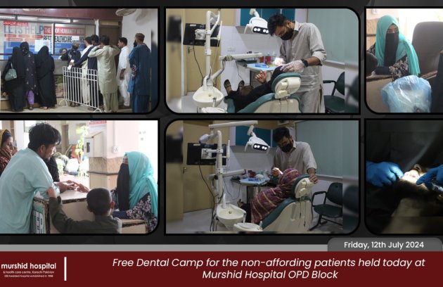 Free Dental Camp for the non-affording patients held today Friday, 12th July 2024 at OPD Block Murshid Hospital.