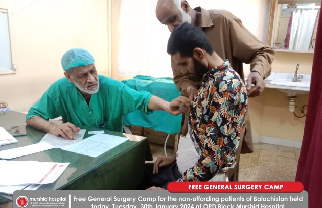 Free General Surgery Camp for the non-affording patients of Balochistan held today, Tuesday, 30th January 2024 at OPD Block Murshid…