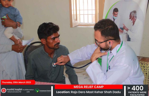 Mega relief camp was held on Thursday, 09th March 2023 at Rajo Dero Mast Kehar Shah Dadu