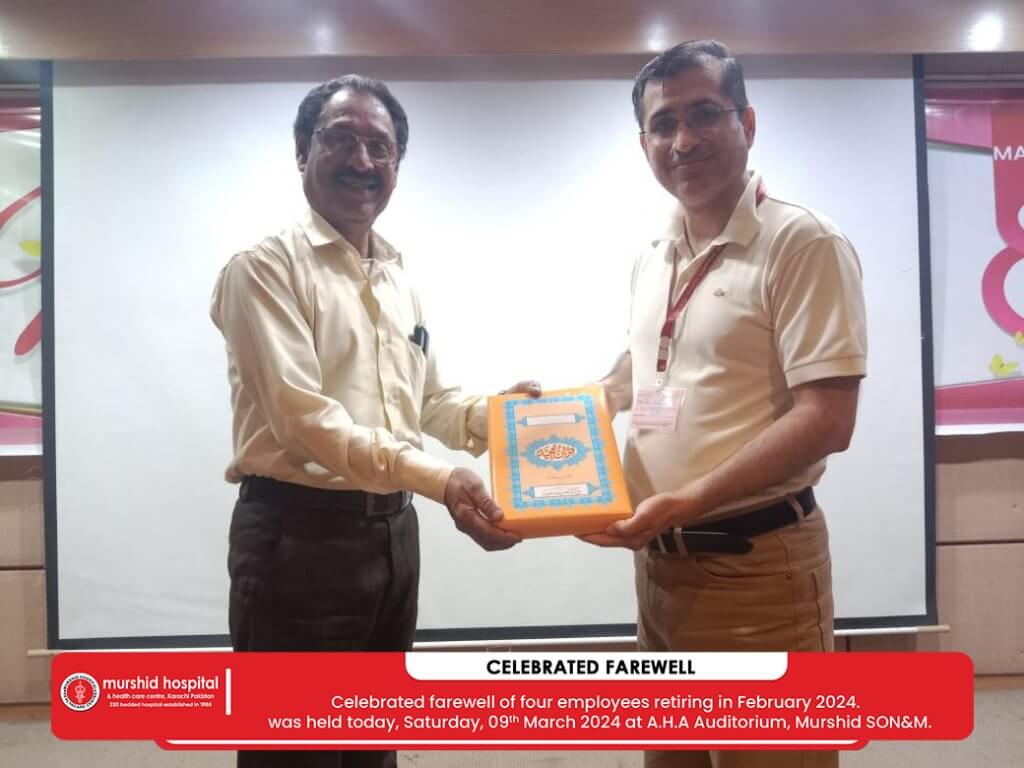 March 9, 2024 Nadeem Sarwar Comment: 0 Uncategorized Celebrated farewell of four employees retiring in February 2024 was held today, Saturday, 09th March 2024 at A.H.A Auditorium, Murshid SON&M.