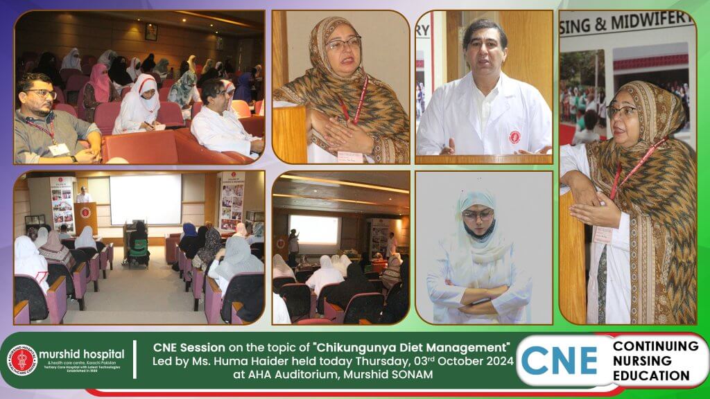 CNE Session on the topic of “Chikungunya Diet Management” Led by Ms. Huma Haider held today Thursday, 03rd October 2024 at AHA Auditorium, Murshid SONAM