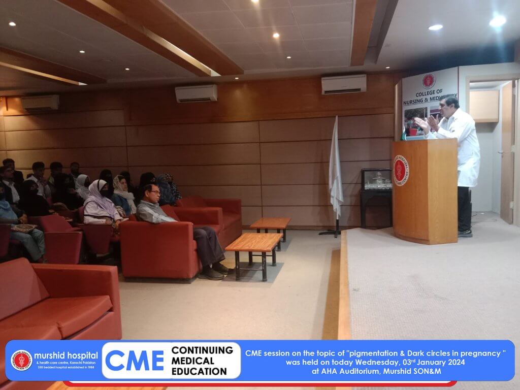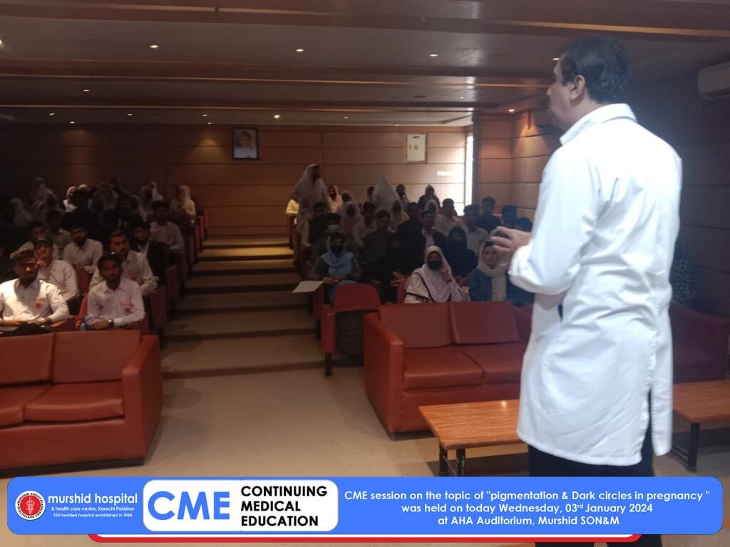 January 3, 2024 Nadeem Sarwar Comment: 0 Uncategorized CME session on the topic of “pigmentation & Dark circles in pregnancy” was held on today Wednesday, 03rd January 2024 at AHA Auditorium, Murshid SON&M