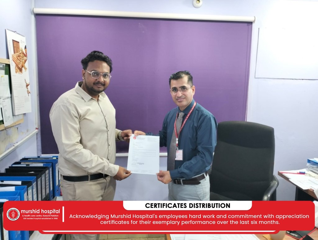February 22, 2024 Nadeem Sarwar Comment: 0 Uncategorized Acknowledge Murshid Hospital’s employees hard work and commitment with appreciation certificates for their exemplary performance over the last six months.