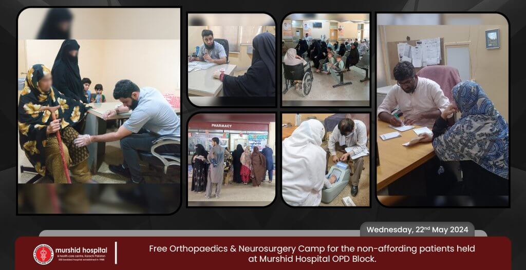 May 22, 2024 Nadeem Sarwar Comment: 0 Uncategorized Free Orthopedics & Neurosurgery Camp for the non-affording patients held on Wednesday, 22nd May 2024 at Murshid Hospital & Health Care Centre OPD Block.