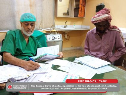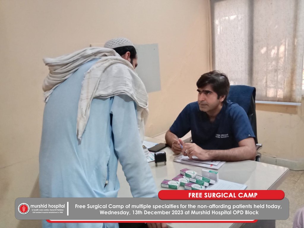 December 13, 2023 Nadeem Sarwar Comment: 0 Uncategorized Free Surgical Camp of multiple specialties for the non-affording patients held today, Wednesday, 13th December 2023 at Murshid Hospital OPD Block