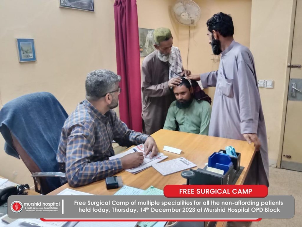December 14, 2023 Nadeem Sarwar Comment: 0 Uncategorized Free Surgical Camp of multiple specialties for the non-affording patients held today, Thursday, 14th December 2023 at Murshid Hospital OPD Block.