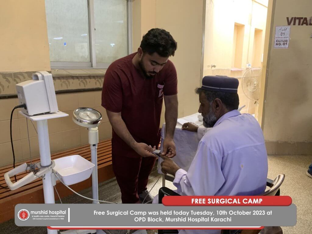 October 11, 2023 Comment: 0 Uncategorized Free Surgical Camp of multiple specialties for all the non-affording patients, was held Tuesday, 10th October 2023 at Murshid Hospital OPD Block.