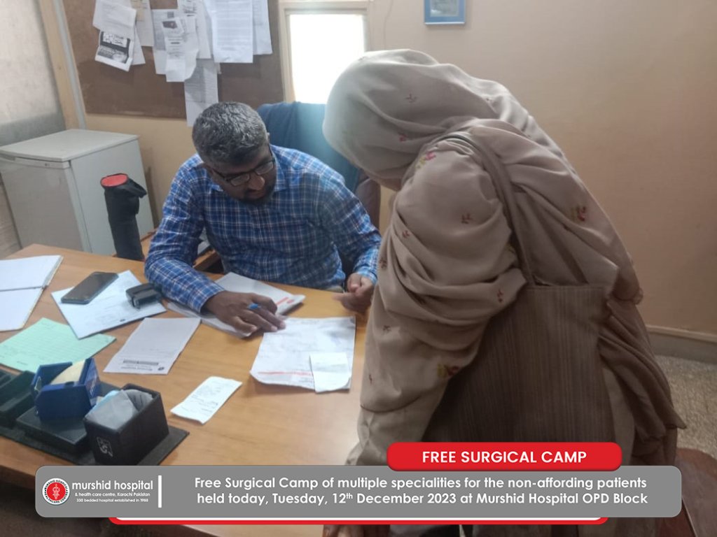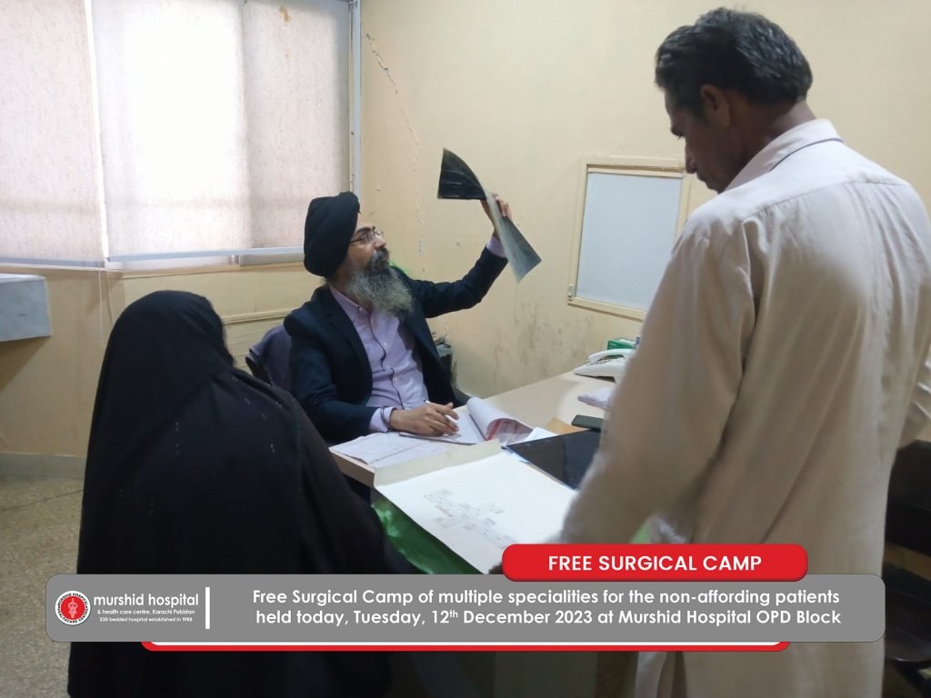 December 12, 2023 Nadeem Sarwar Comment: 0 Uncategorized Free Surgical Camp of multiple specialties for the non-affording patients held today, Tuesday, 12th December 2023 at Murshid Hospital OPD Block