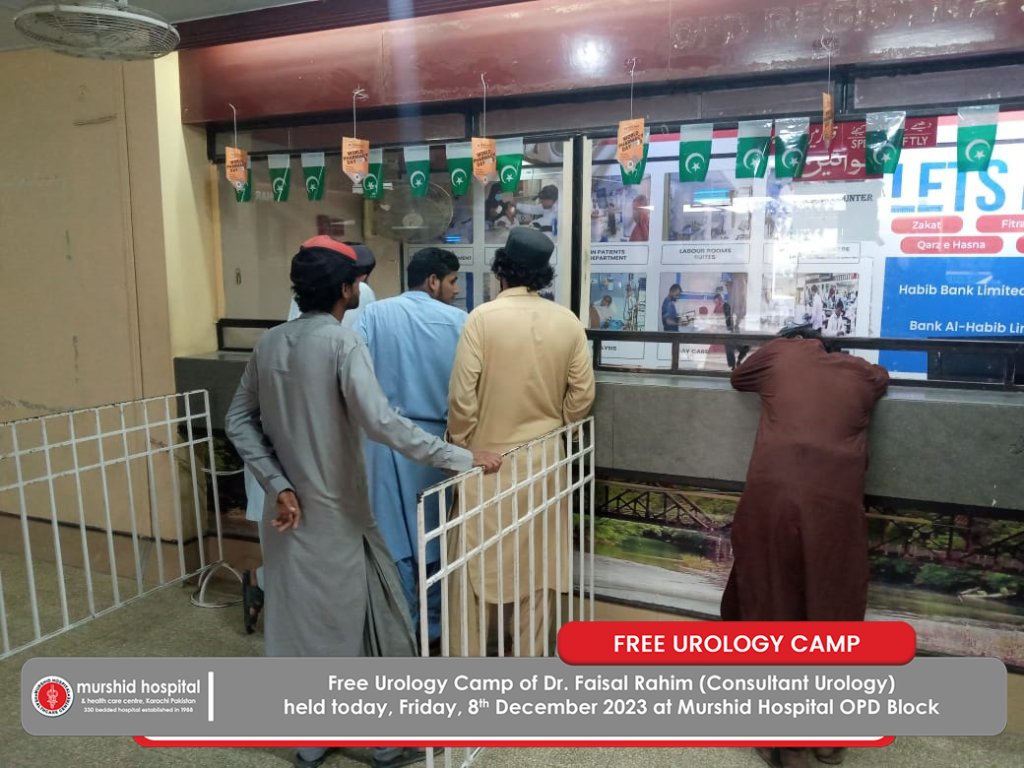 Free Urology Camp of Dr. Faisal Rahim (Consultant Urology) was held today, Friday, 8th December 2023 at Murshid Hospital OPD Block