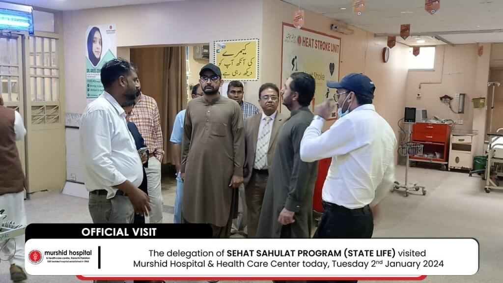 January 2, 2024 Nadeem Sarwar Comment: 0 Uncategorized The delegation of SEHAT SAHULAT PROGRAM (STATE LIFE) visited Murshid Hospital & Health Care Center today, Tuesday 2nd January 2024.