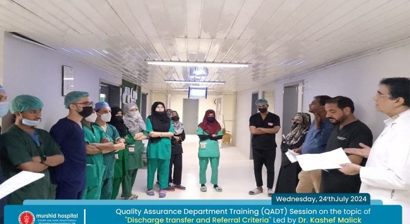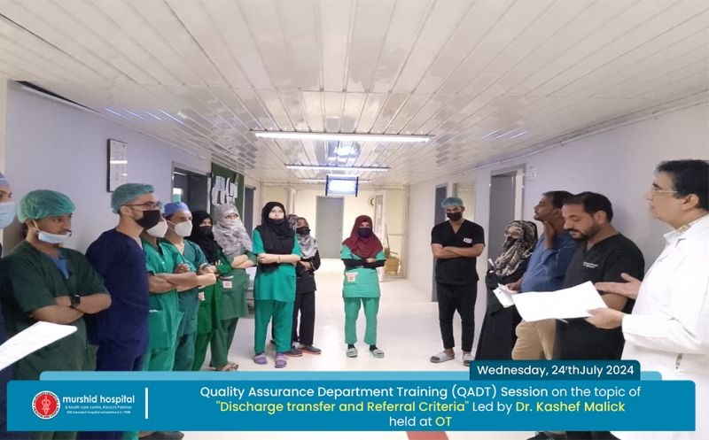 July 24, 2024 Nadeem Sarwar Comment: 0 Uncategorized Quality Assurance Department Training (QADT) Session on the topic of “Discharge transfer & Referral Criteria” Led by Dr. Kashef Ahmed Malick held today at Operation Theatre – OT.