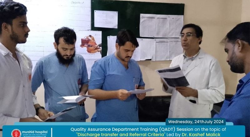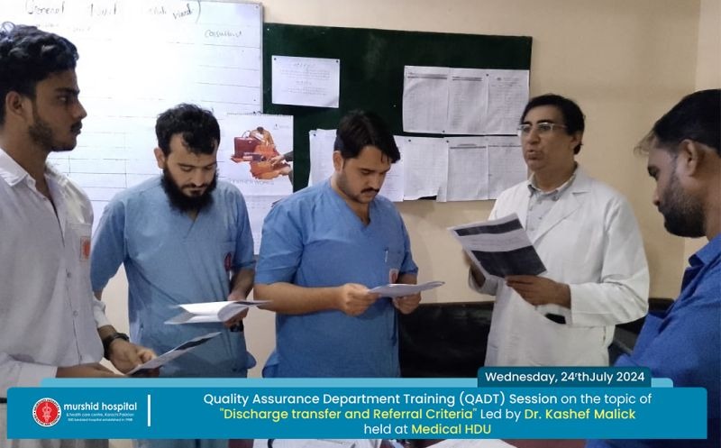 July 24, 2024 Nadeem Sarwar Comment: 0 Uncategorized Quality Assurance Department Training (QADT) Session on the topic of “Discharge transfer & Referral Criteria” Led by Dr. Kashef Ahmed Malick held today at Medical HDU.