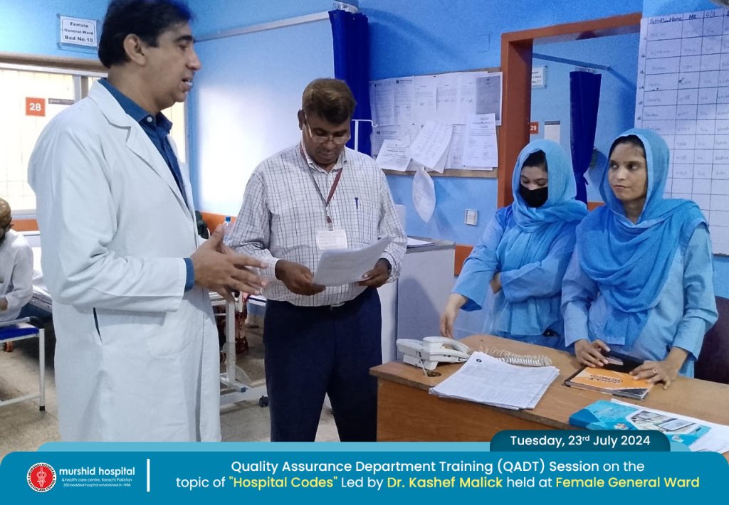 Quality Assurance Department Training (QADT) Session on the topic of “Hospital Codes” Lead by Dr. Kashef Ahmed Malick held today at Female General Ward.
