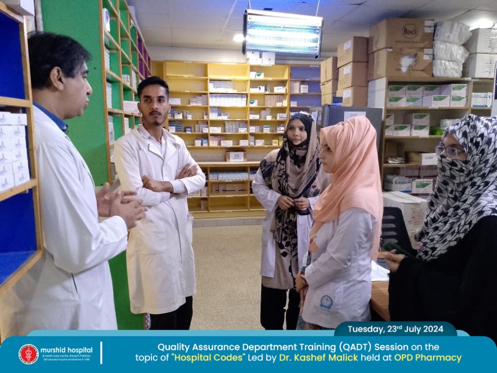 Quality Assurance Department Training (QADT) Session on the topic of “Hospital Codes” Lead by Dr. Kashef Ahmed Malick held today at OPD Pharmacy.