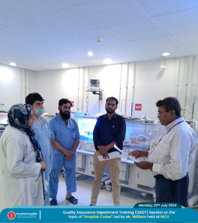 July 22, 2024 Nadeem Sarwar Comment: 0 Uncategorized Quality Assurance Department Training (QADT) Session on the topic of “Hospital Codes” Lead by Mr. William held today at NICU.