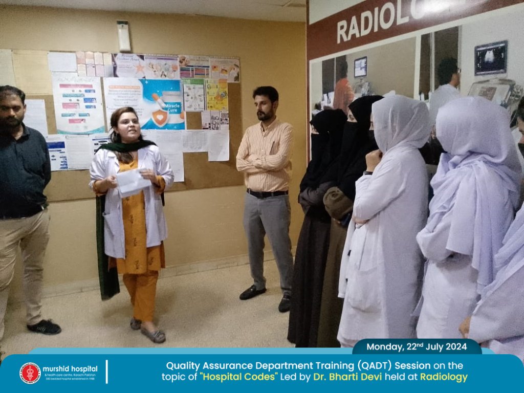 July 22, 2024 Nadeem Sarwar Comment: 0 Uncategorized Quality Assurance Department Training (QADT) Session on the topic of “Hospital Codes” Lead by Dr. Bharti Devi held today at Radiology Department.