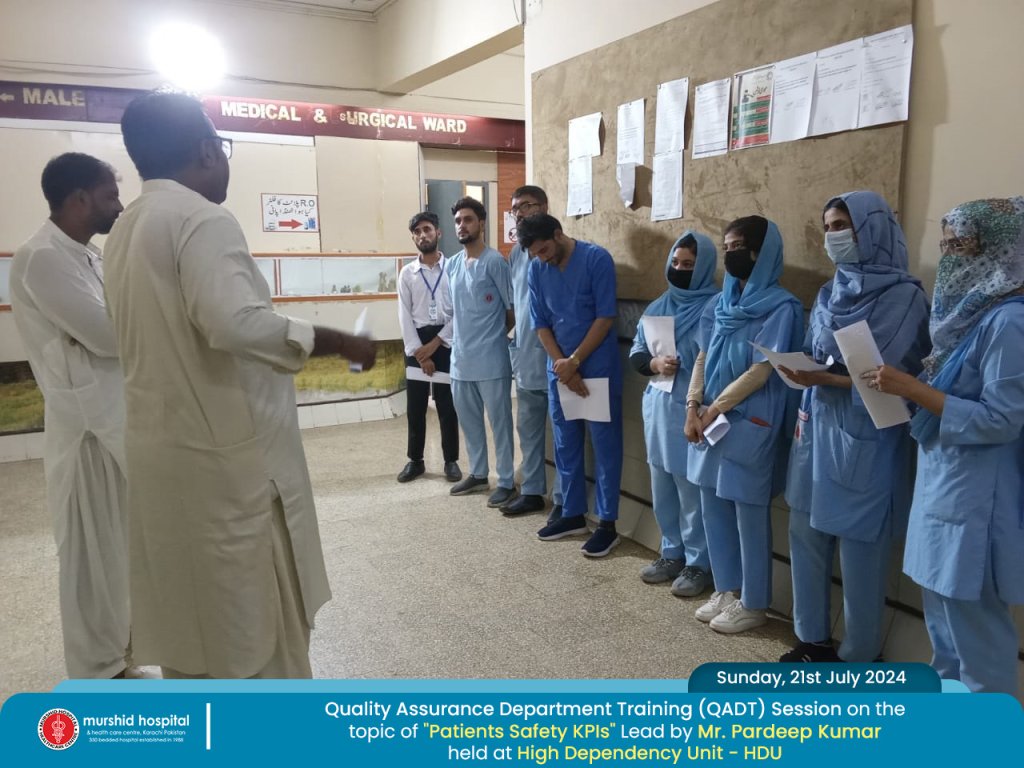 July 21, 2024 Nadeem Sarwar Comment: 0 Uncategorized Quality Assurance Department Training (QADT) Session on the topic of “Patients Safety KPIs” Lead by Mr. Pardeep Kumar held today at High Dependency Unit – HDU.