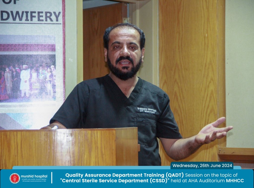 June 26, 2024 Nadeem Sarwar Comment: 0 Uncategorized Quality Assurance Department Training (QADT) Session on the topic of “Central Sterile Service Department (CSSD)” will be held on Wednesday, 24th July 2024 at AHA Auditorium Murshid Hospital
