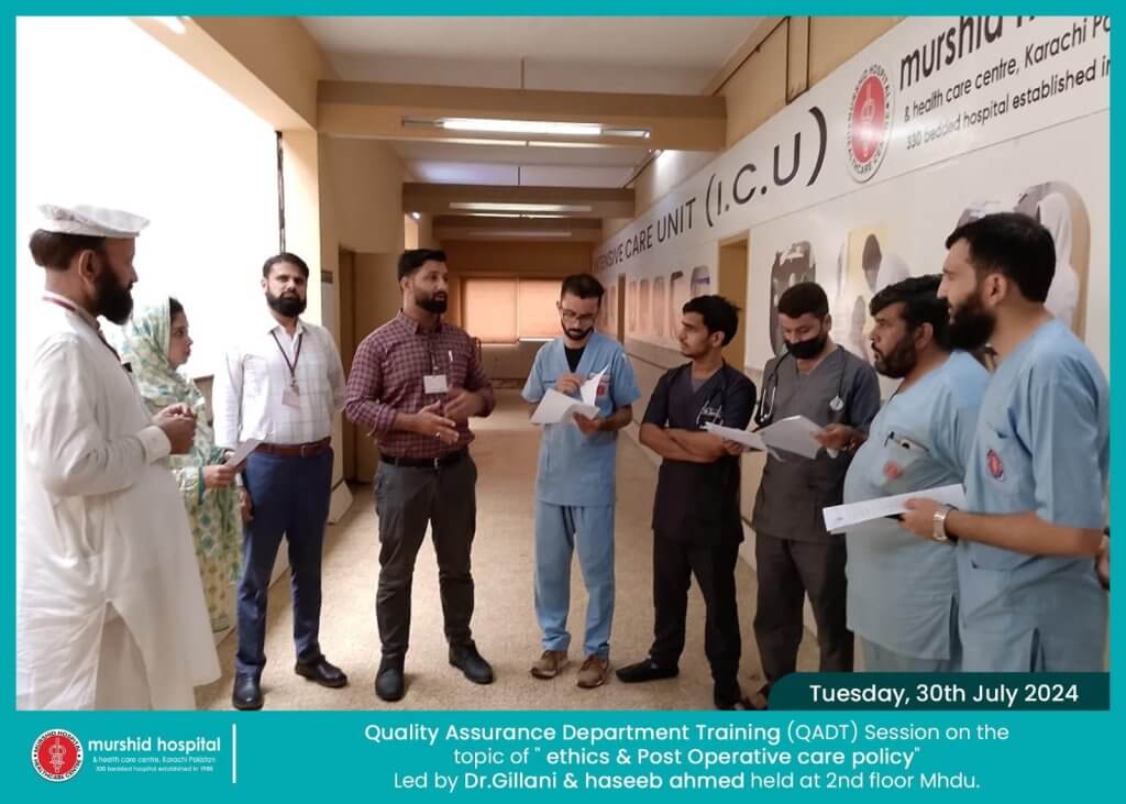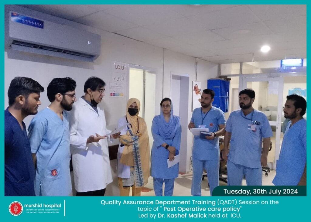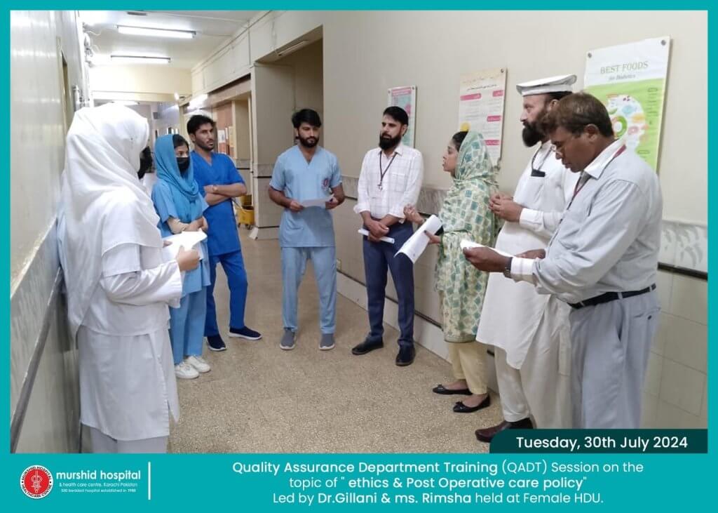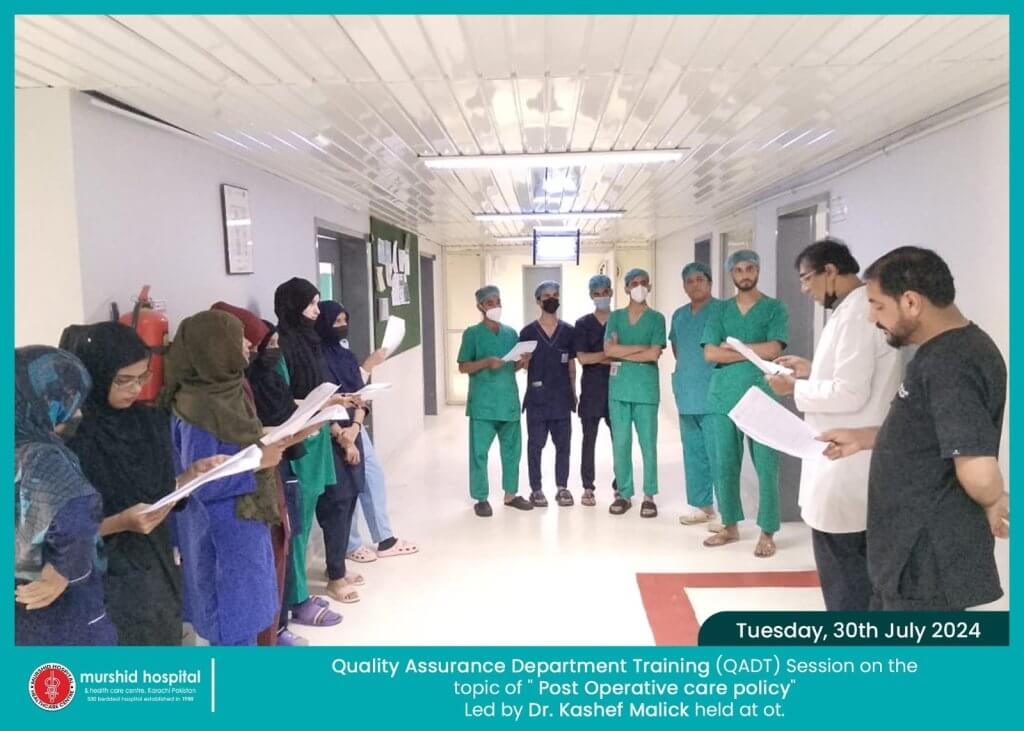 July 30, 2024 Nadeem Sarwar Comment: 0 Uncategorized Quality Assurance Department Training Session (QADTS) on the topic of “Post Operative Care Policy” held today Tuesday, 30th July 2024 at MHHCC
