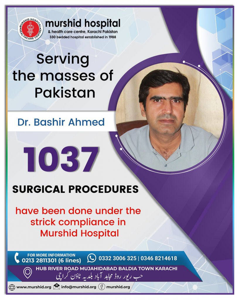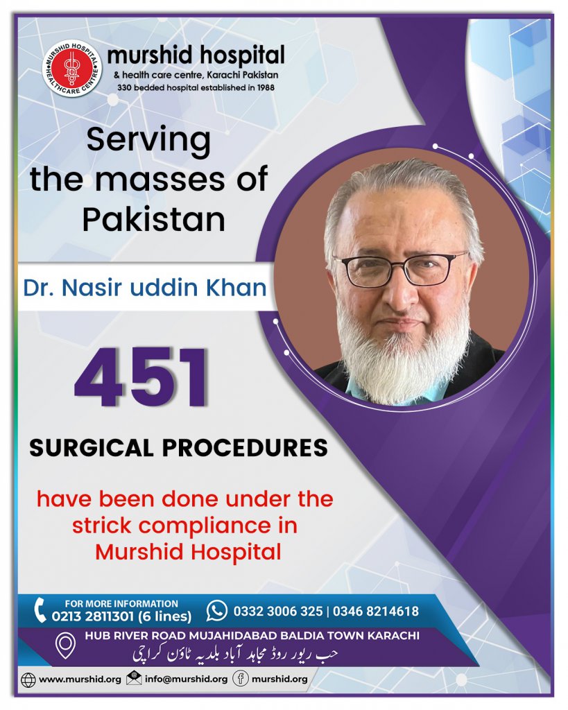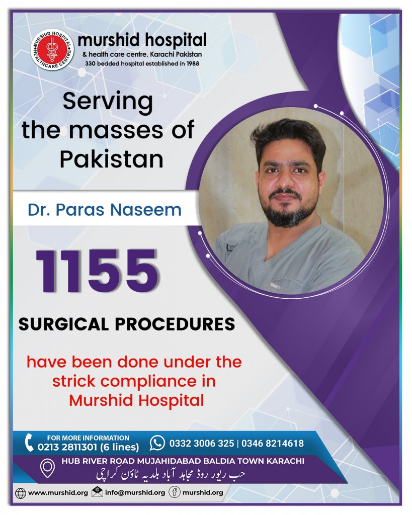 June 16, 2023 Comment: 0 Uncategorized Serving the masses of Pakistan, doctors’ surgical procedures are under strict compliance at Murshid Hospital.